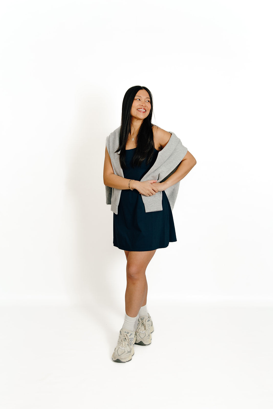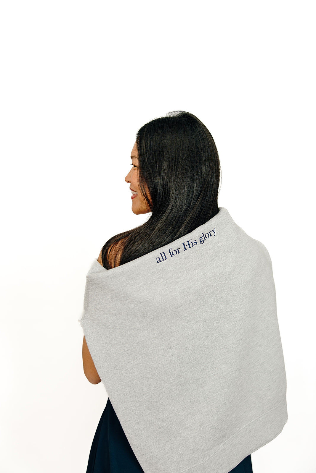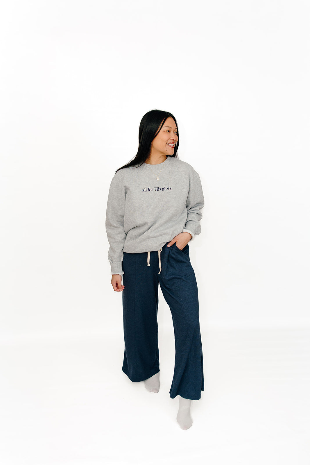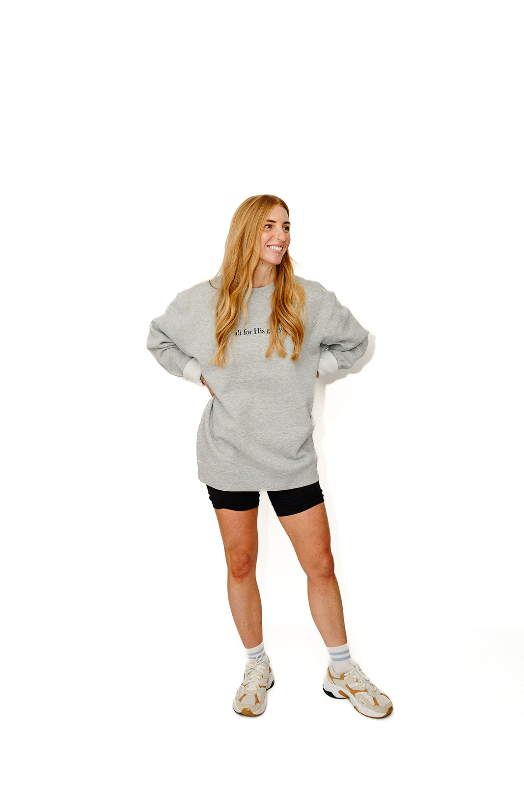 Staple crewneck sweatshirt you will grab all year! This light gray sweatshirt is thick, comfy, and fits true to size. Make sure you size up for an oversized fit. The letters across the chest are embroidered in navy!