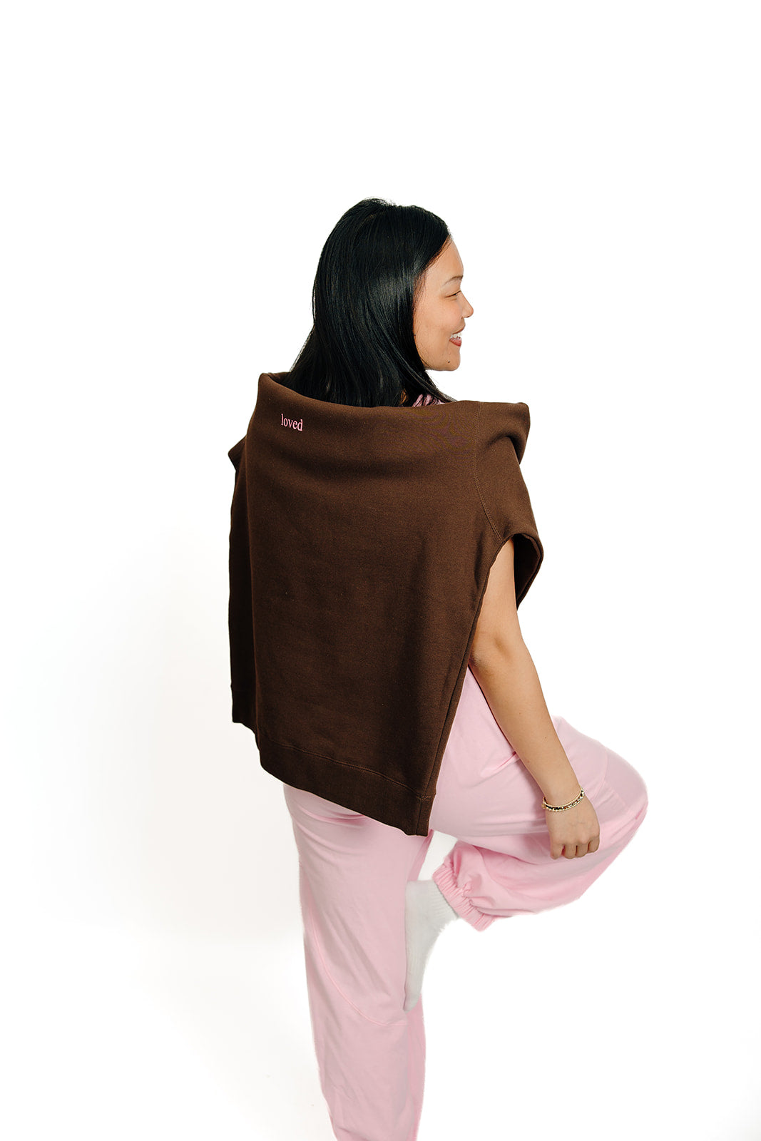 This brown Valentine's crewneck has a little splash of pink with "LOVED" on the chest. This sweatshirt is true to size, so size up for oversized fit.